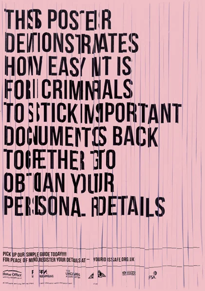 The selected theme was "Identity Theft," conveyed through a range of promotional materials including a booklet, poster, ATM stickers, and website, all aimed at advocating for identity safety. Each element was carefully designed to appear authentic, with subtle deviations hinting at potential threats. Information typically considered vital for protection, such as covering PIN numbers at ATM machines and shredding documents, was deliberately corrupted to encourage risky behavior. This approach served to highlight the importance of remaining vigilant and implementing secure practices to safeguard personal identity information.